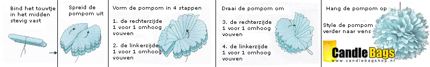 pompom-handleiding Published 15 augustus 2014 at 840 × 132 in Pompon wit 25 cm hoe vouw je een pompom uit Next →