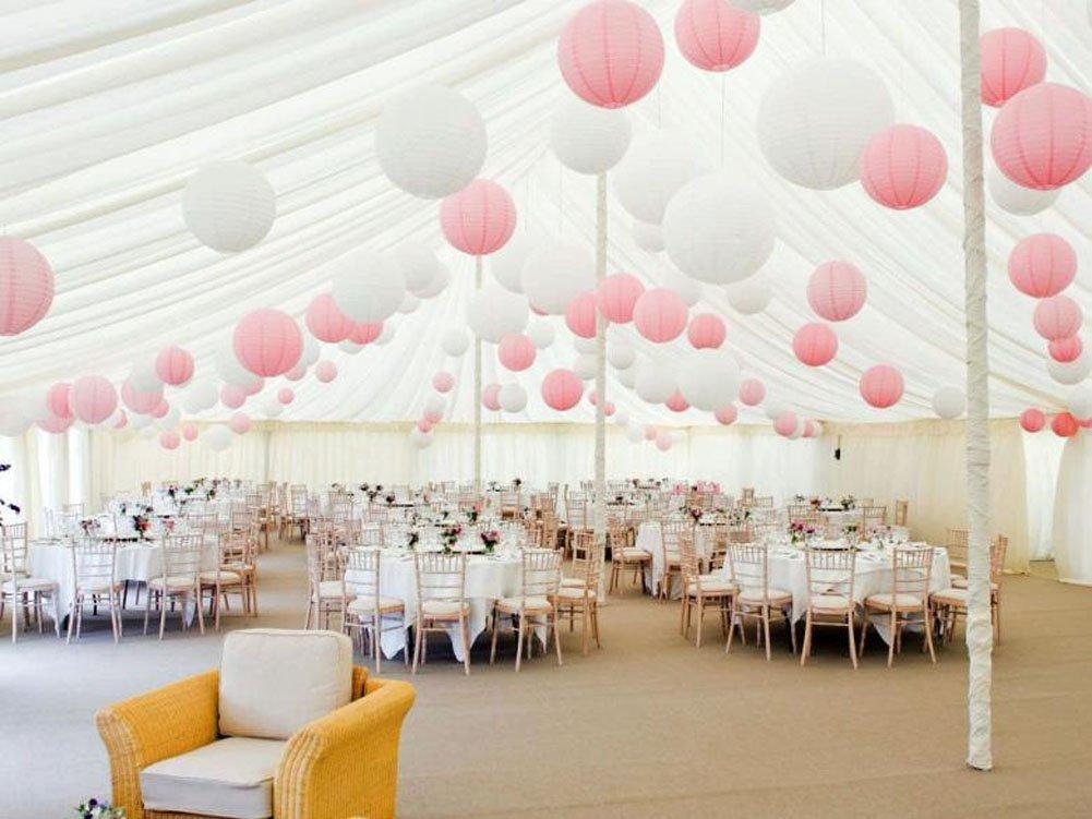Wit is de populairste kleur voor het huwelijk al dan niet geaccentueerd met een ander kleurtje maar ook alleen wit is prachtig hieronder een galerij met alleen maar witte lampionnen gebruikt tijdens huwelijks decoraties