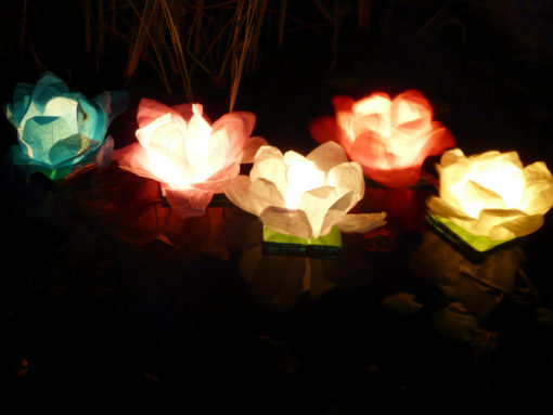 In Aziatische landen worden deze lantaarns gebruikt om het kwade af te wenden en geluk te ontvangen.Op de bloemblaadjes worden dan de wensen geschreven.