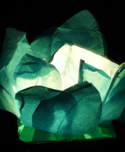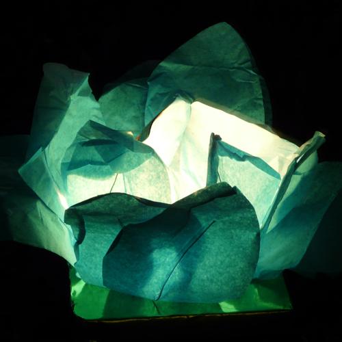 Plaats het theelichtje in het midden van de waterlelie en steek deze aan.