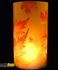 Candlecover met herftsbladeren en echte cover voor op die herfsttafel Ook deze candlecover is heel mooi te combineren met andere candle covers