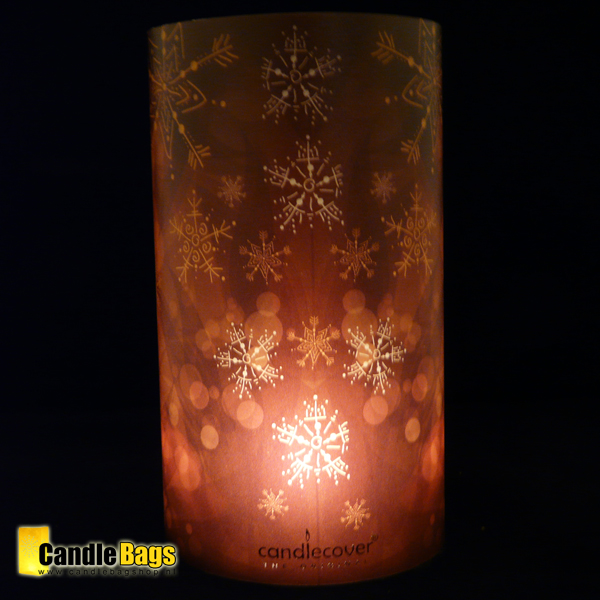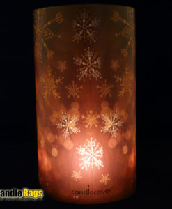 Speciale candlecover voor de herfst of kerstdagen, heeft warme aardkleuren met sneeuwvlokken Ook deze candlecover is heel mooi te combineren met andere candle covers