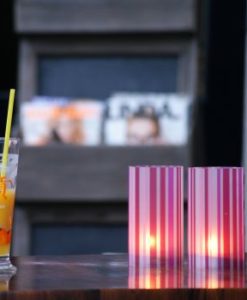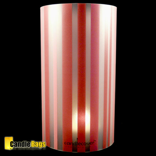 Candlecover met hip streepmotief in paarse tinten Ook deze candlecover is heel mooi te combineren met andere candle covers