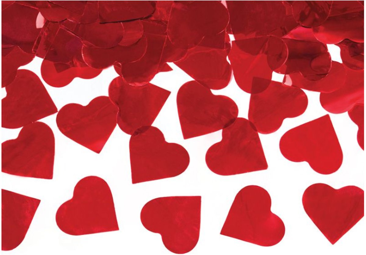 60 cm lange confetti shooters met vulling van metallic hartjes. Vier de liefde met deze confetti shooter met rode hartjes