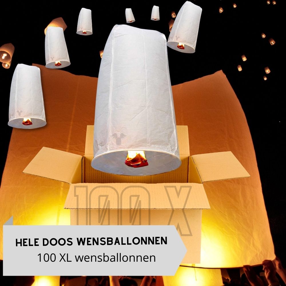 De populaire XL Wensballonnen nu nog voordeliger wanneer u een hele doos van 100 stuks aanschaft