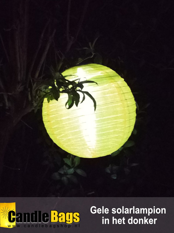 Gele Nylon lampion met diameter van 30 cm op zonne energie