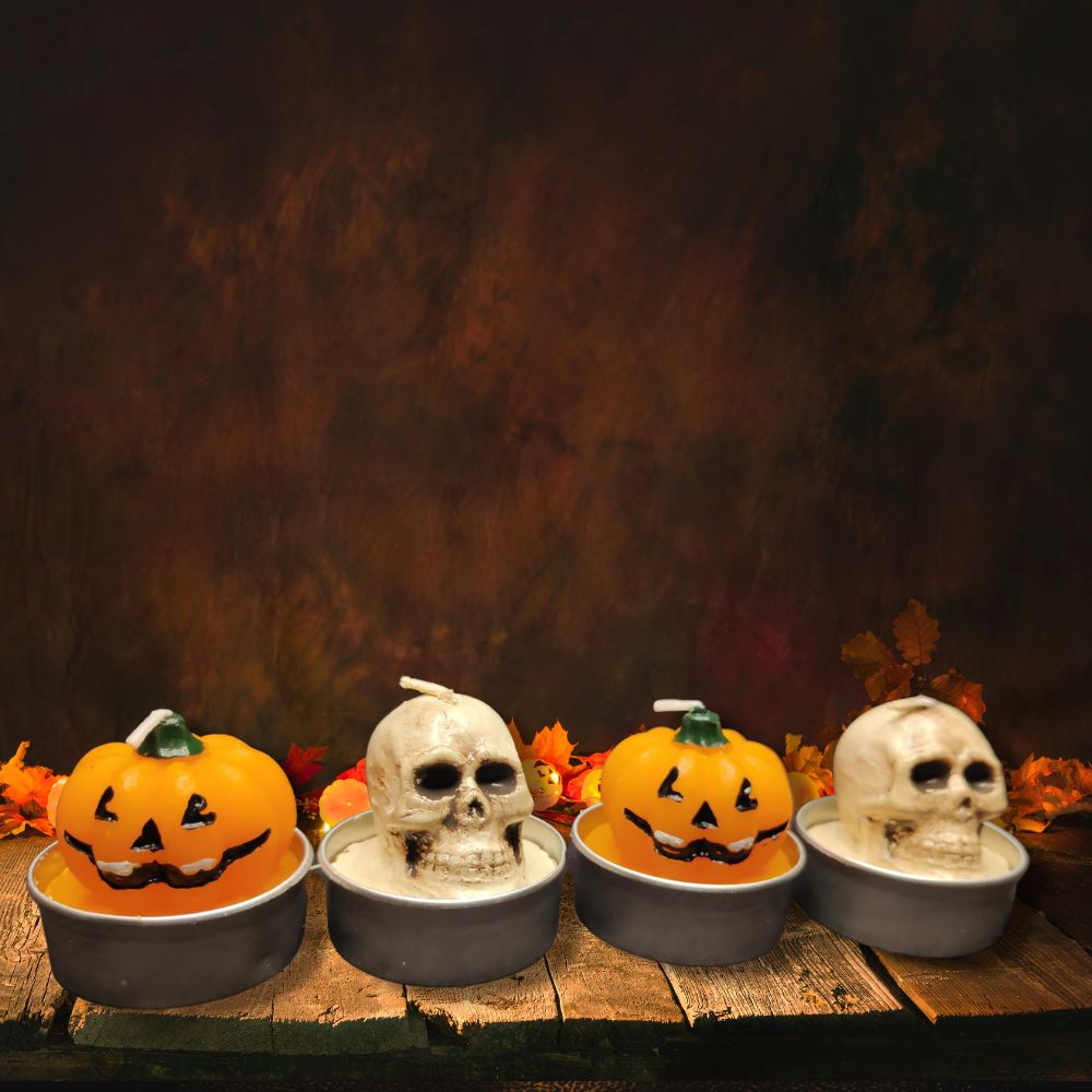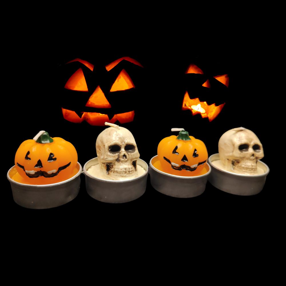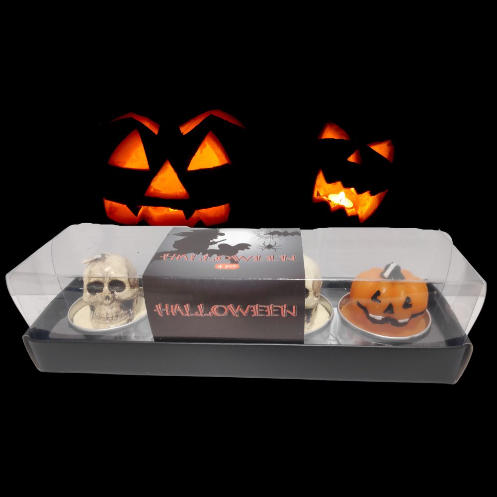 Deze leuke set van 4 kaarsjes bestaat uit 2 kaarsjes in de vorm van een pompoen en 2 kaarsjes in de vorm van een schedel. De kaarsjes zijn ongeveer 4 cm hoog en verpakt in een leuk doosje en daarmee ook geschikt als geschenk voor Halloween