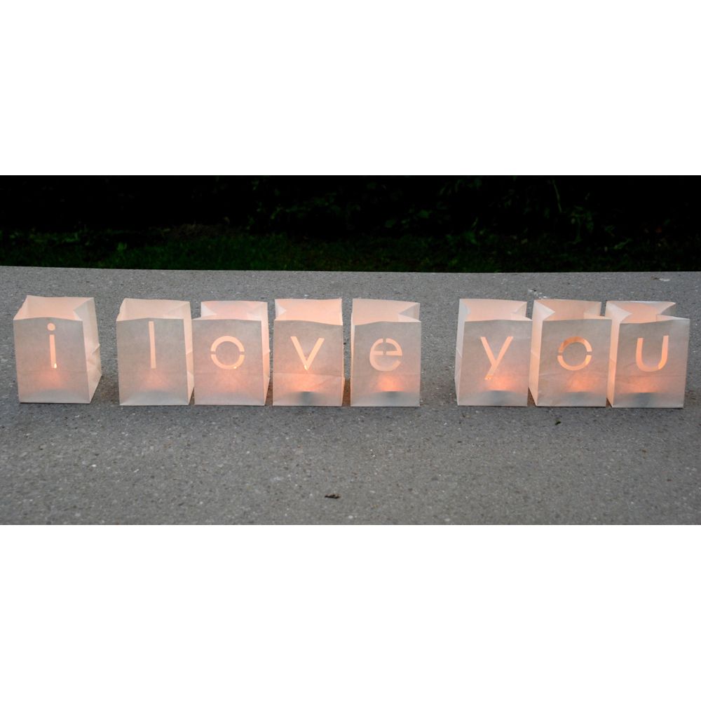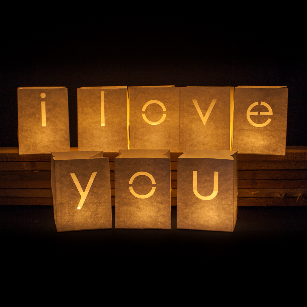Verklaar iemand de liefde met deze complete set van 8 candlebags die samen de tekst ” i love you” maken