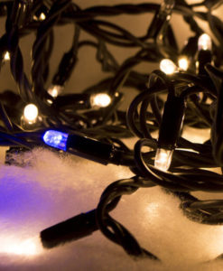 Professionele kerstverlichting van 10 meter met 100 LED lampjes waarbij de warm witte LEDs (84 stuks) 2900 K en de blauwe fonkel LEDs (16 stuks) elkaar afwisselen. Hierdoor heeft u een heel mooi product dat zeker bekijks trekt door de interactie van de fonkelende blauwe leds. Wanneer u aandacht wil trekken met uw kerst verlichting is dit product zeker een aanrader.