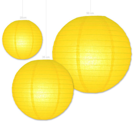 Lampionnen zijn zowel bij daglicht als in het donker geweldig om te zien. Deze gele lampion heeft een doorsnede van 50cm en is hiermee een echte blikvanger. Lampionnen mogen op geen enkel feest ontbreken het is zijn relatief goedkope decoratiestukken die bij zullen dragen aan een extra feestelijke uitstraling ook verkrijgbaar in de afmeting 20cm en 35cm
