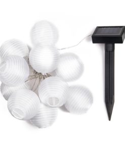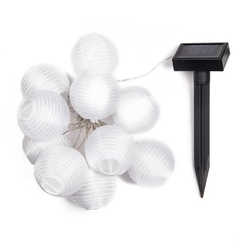 Deze lampionnen slinger met 10 witte lampionnen met warm witte verlichting , werkt op zonne-energie