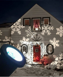 Unieke sneeuwvlokken projector geschikt voor binnen en buiten. Met deze speciale lamp projecteer je bewegende sneeuwvlokken op je huis, plafond , etalage of muur voor een unieke kerstdecoratie.