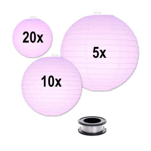 Prachtig pakket met lampionnen bestaande uit 35 lila lampionnen in verschillende formaten als pakket extra voordelig