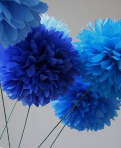 Pompons zijn decoraties gemaakt van zijdevloeipapier die lijken op bloembollen en vormen een prachtige decoratie. Wanneer u de pom pons combineert met lampionnen zult u zult versteld staan van het resultaat . Mix en match verschillende afmetingen en kleuren door elkaar en u creëert in een handomdraai de mooiste decoraties voor uw huwelijk, verjaardag- tuinfeest of andere feestelijke gebeurtenis.