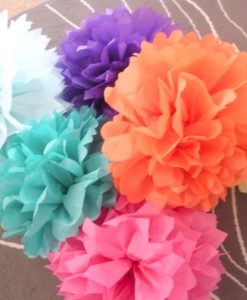 Pompons zijn decoraties gemaakt van zijdevloeipapier die lijken op bloembollen en vormen een prachtige decoratie. Wanneer u de pom pons combineert met lampionnen zult u zult versteld staan van het resultaat . Mix en match verschillende afmetingen en kleuren door elkaar en u creëert in een handomdraai de mooiste decoraties voor uw huwelijk, verjaardag- tuinfeest of andere feestelijke gebeurtenis.