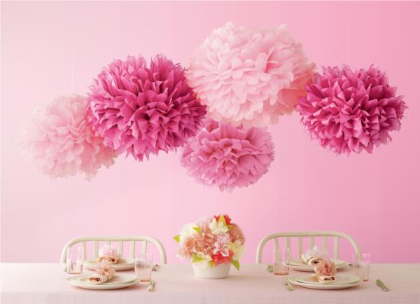 Krijg je eters over de vloer? Hang een paar pompons aan de muur of boven de tafel. Een buffet wordt extra feestelijk door er papieren pompons en lampionnen boven te hangen. De mogelijkheden zijn eindeloos