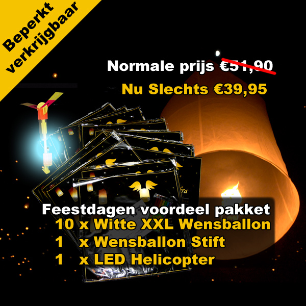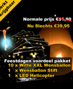10 wensballonnen een stift en een LED Helicopter voor de prijs van 39,95 als dat niet voordelig is.