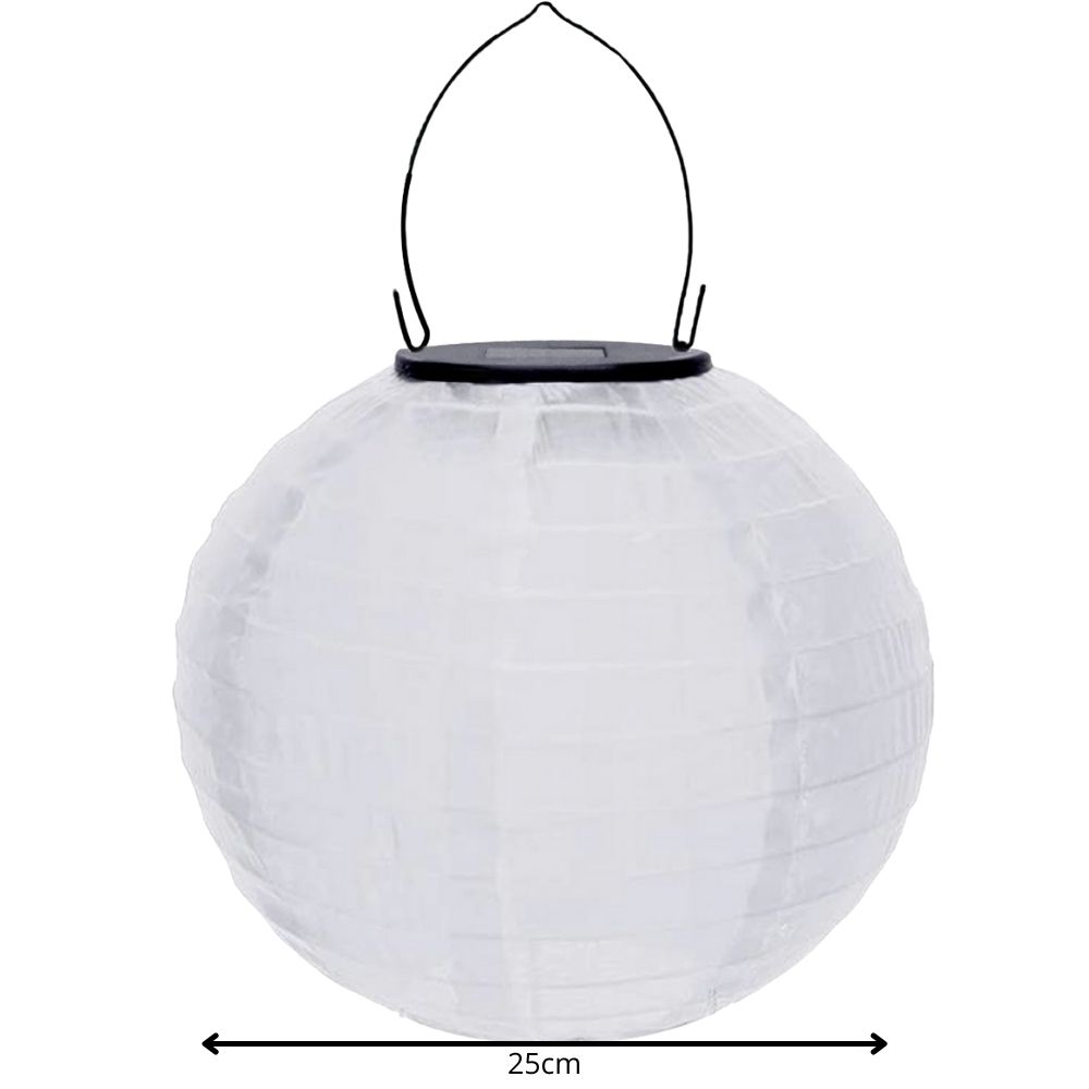 Deze mooie witte solar lampionnen op zonne-energie zijn gemaakt van weerbestendig nylon voor buiten gebruik. De lampionnen hebben een zonne paneeltje met een lichtsensor waardoor het licht automatisch aan gaat zodra de schemering invalt.