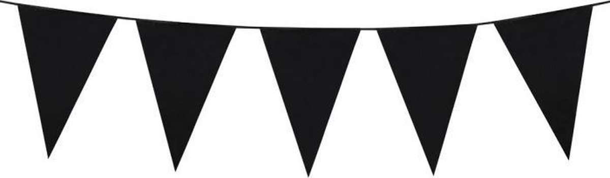 Deze vlaggenlijn is perfect om elke gelegenheid te versieren! De lijn heeft een totale lengte van 10 meter en is voorzien van zwarte vlaggetjes met een breedte van 20cm en een hoogte van 30cm. De vlaggen zijn gemaakt van hoogwaardig materiaal dat zowel binnen als buiten kan worden gebruikt.